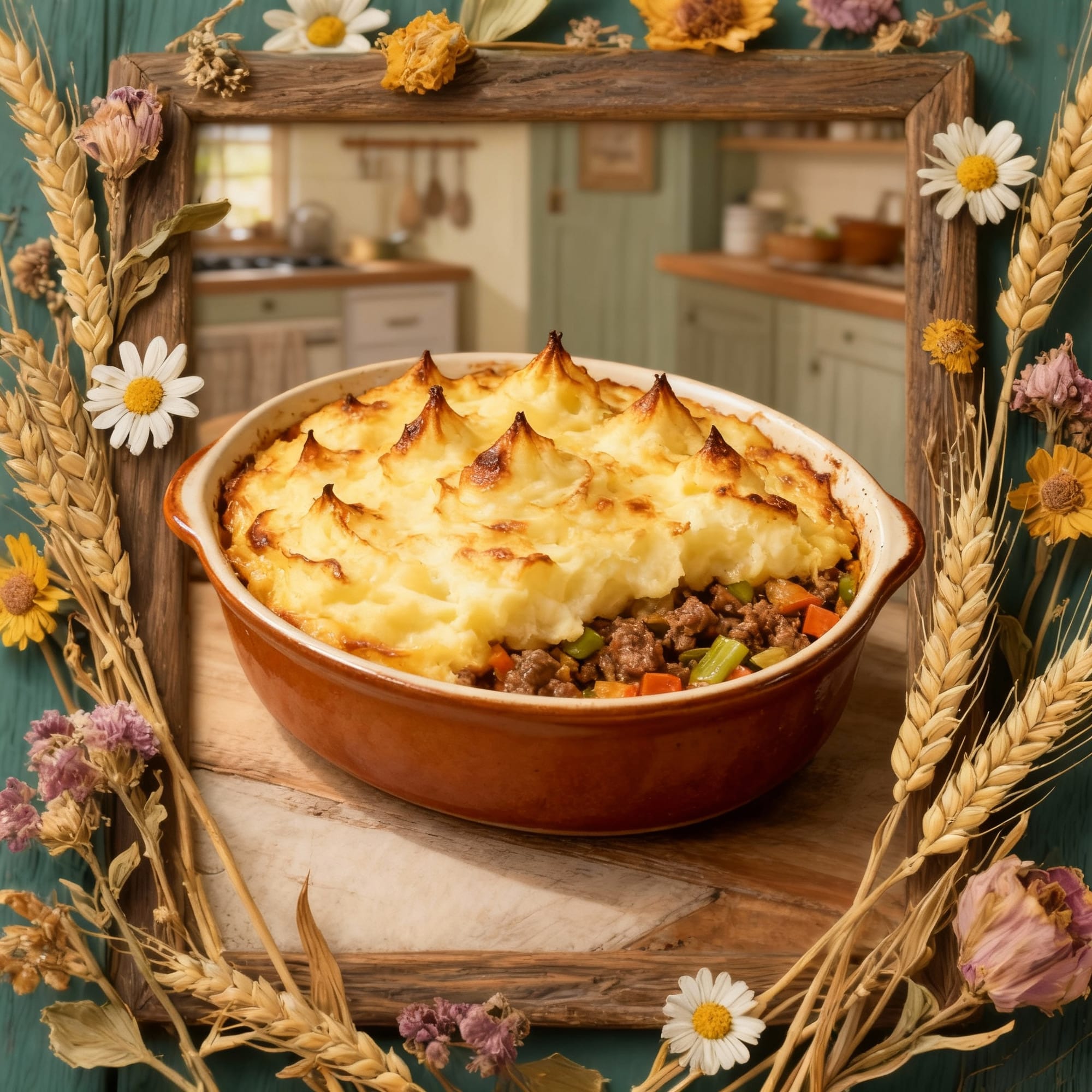 Ground lamb with vegetables topped with creamy mashed potatoes—quintessential English comfort food that would have been a staple in farmhouse kitchens.