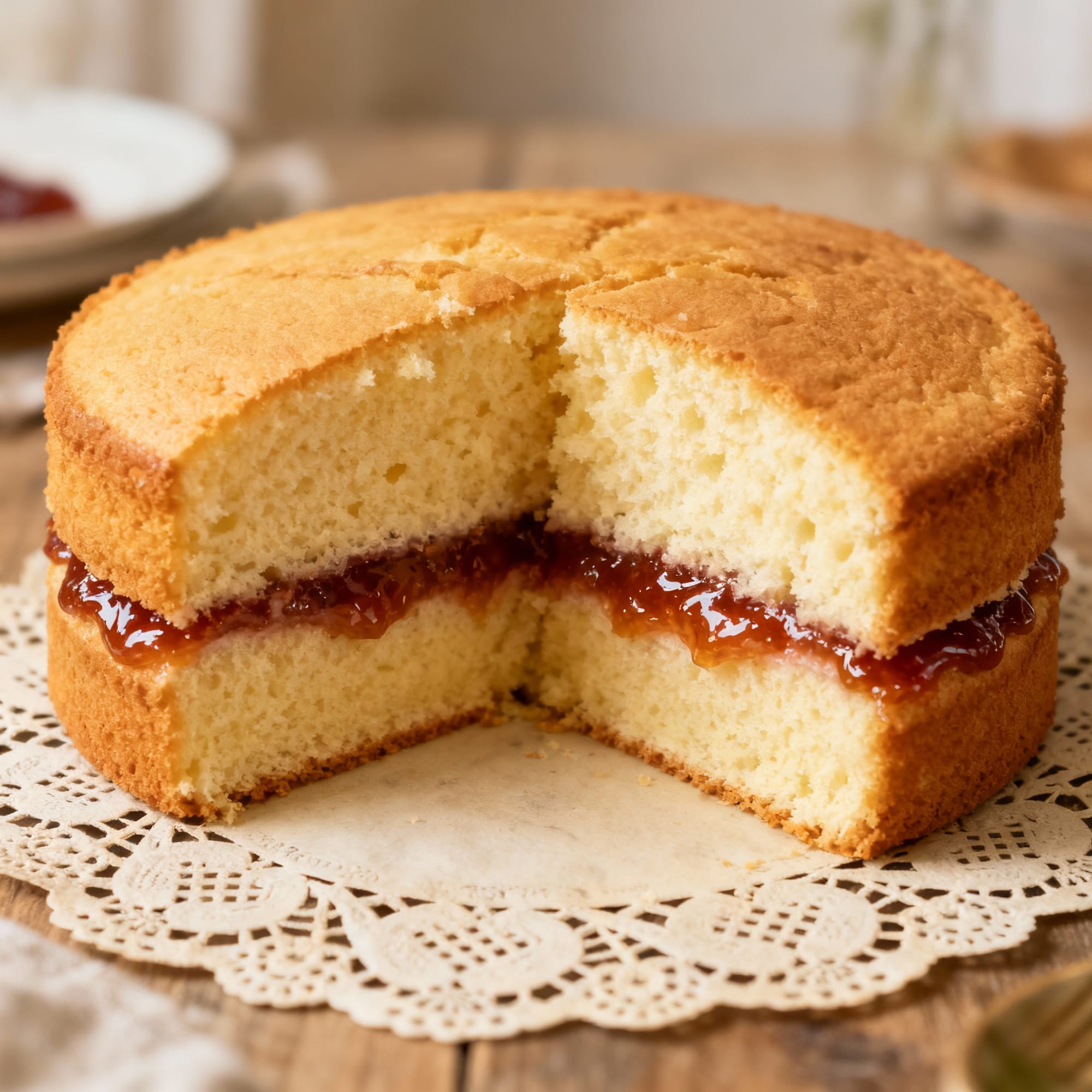 A light sponge cake filled with jam and cream, named after Queen Victoria and a staple of British tea time throughout the 20th century.
