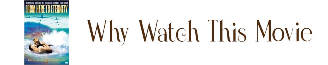From Here to Eternity offers a rich blend of character-driven drama, wartime history, and swoony old-Hollywood romance that pairs beautifully with the novel or a book-club discussion.