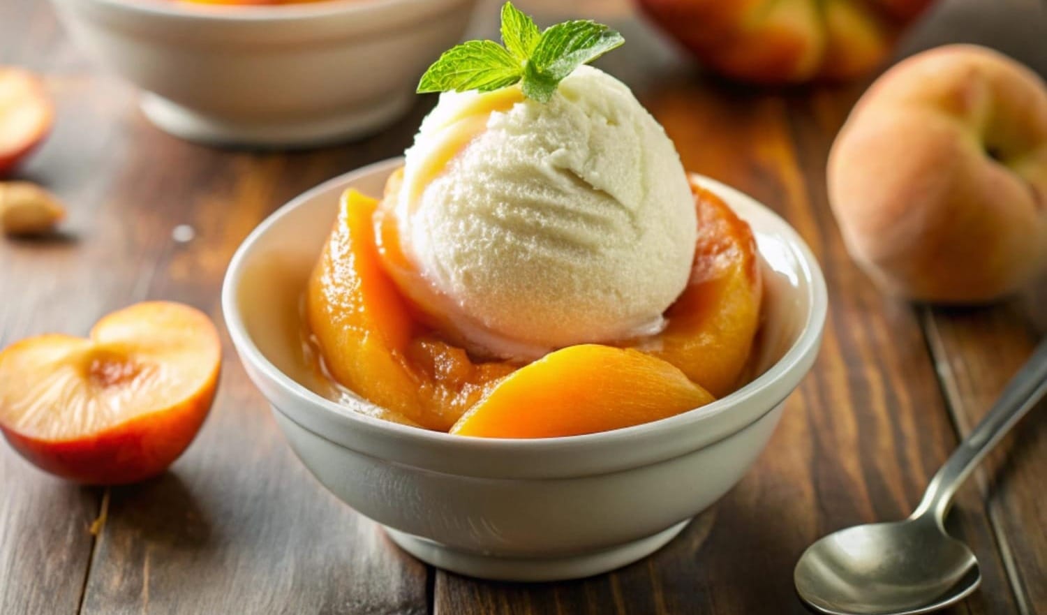 Colorado Snowmelt Vanilla Ice Cream with Peach Compote