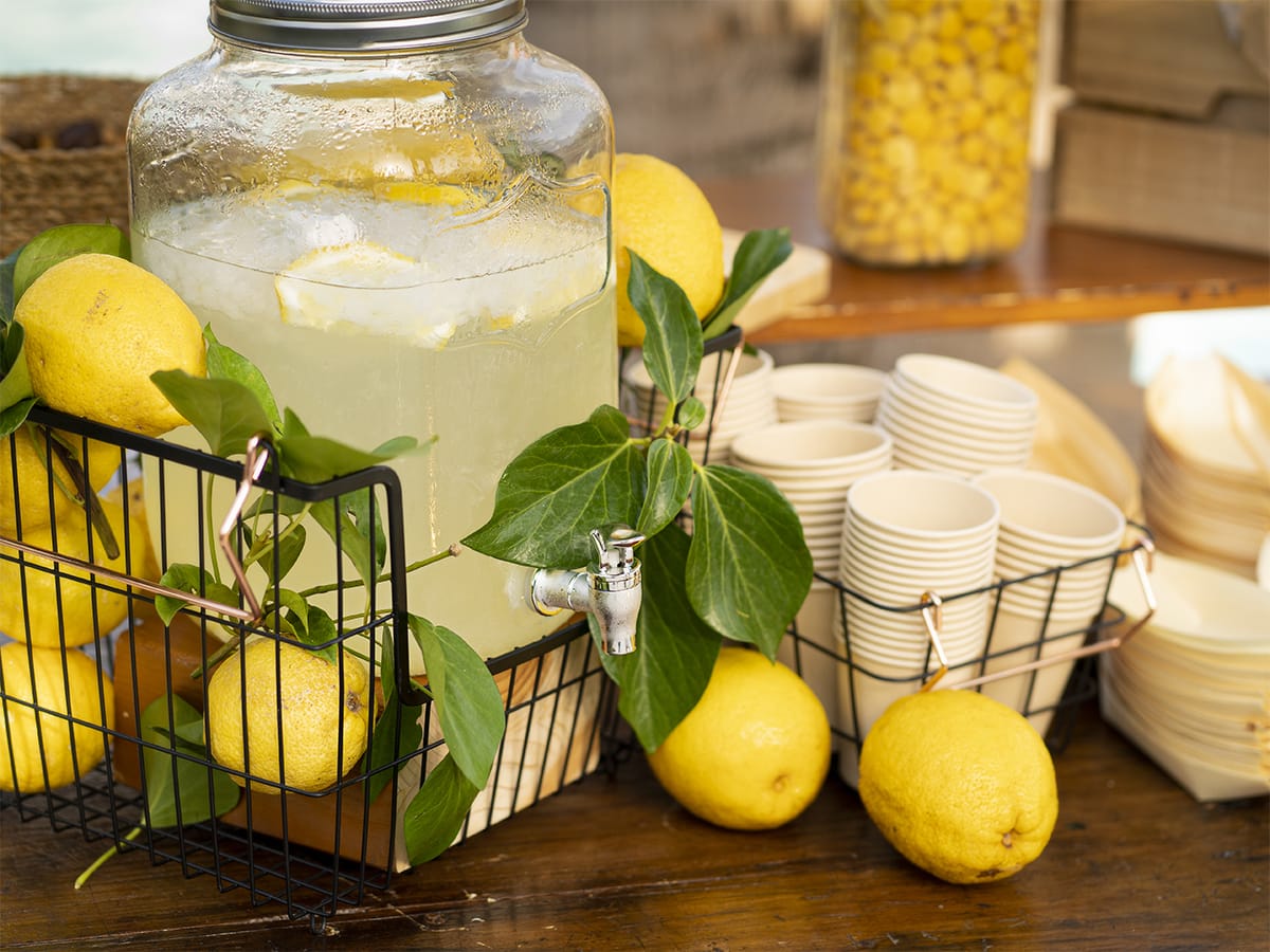 Lemonade Stand: Set up a classic lemonade station with sliced lemons and mason jar glasses.