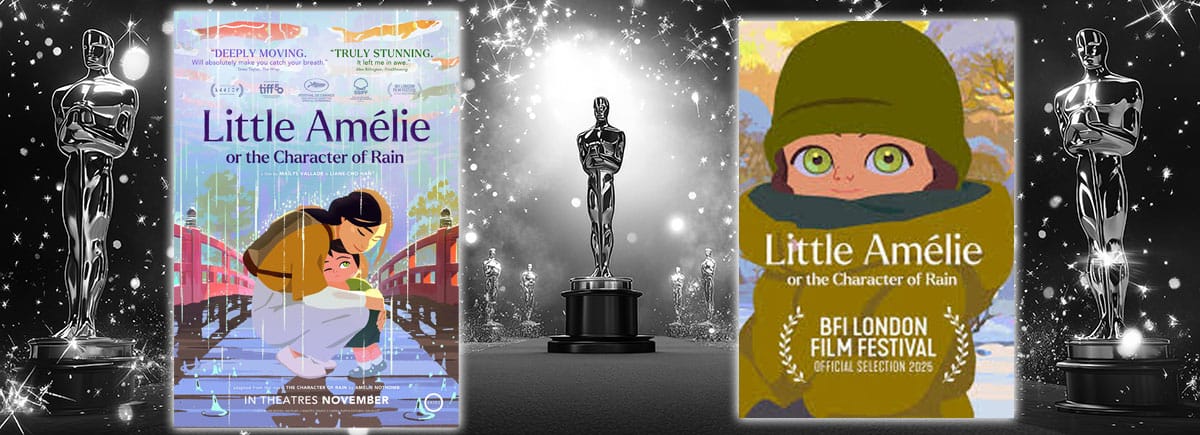 Little Amélie (often subtitled Or the Character of Rain) springs from the acclaimed novel that explores a child’s inner world in 1960s Japan, reimagined here with meticulous period detail and an emphasis on memory, imagination, and identity. The film built its reputation on the festival circuit, including Cannes and Annecy, where it collected both praise and hardware before gliding into the Oscar race as one of the more delicate literary adaptations in the mix.