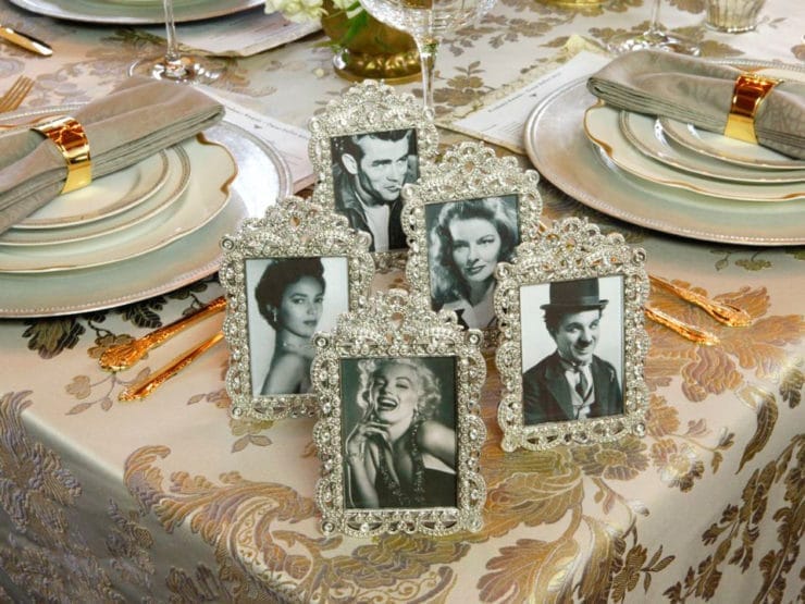 - Centerpieces: Arrange framed vintage photos of Hollywood stars on the serving table. PRINTABLE PHOTOS INCLUDED WITH PRINTABLE BOOK CLUB KIT. Add faux pearls, feathers, or film reels for a cinematic touch.