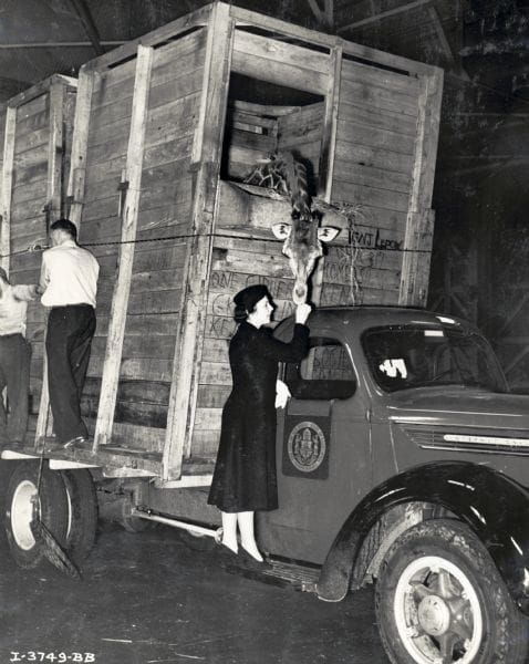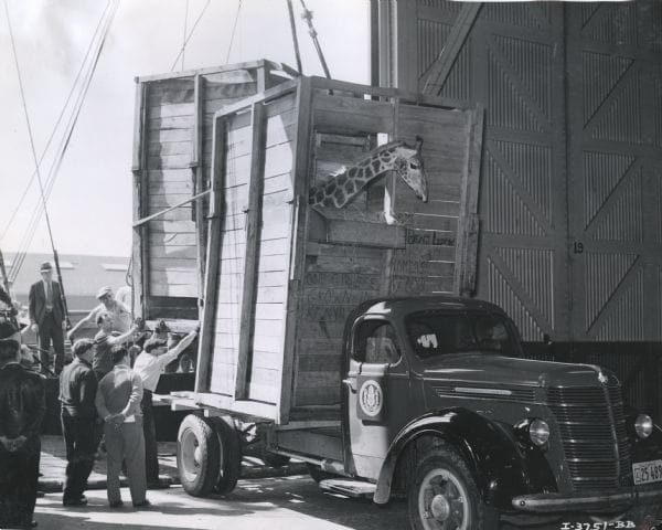 Belle had to decide whether to transport the giraffes across the country by train or by truck. While giraffes had never been driven across the country before, Belle determined this was the better option because it allowed the freedom to stop as often as necessary for the animals to rest and eat.
