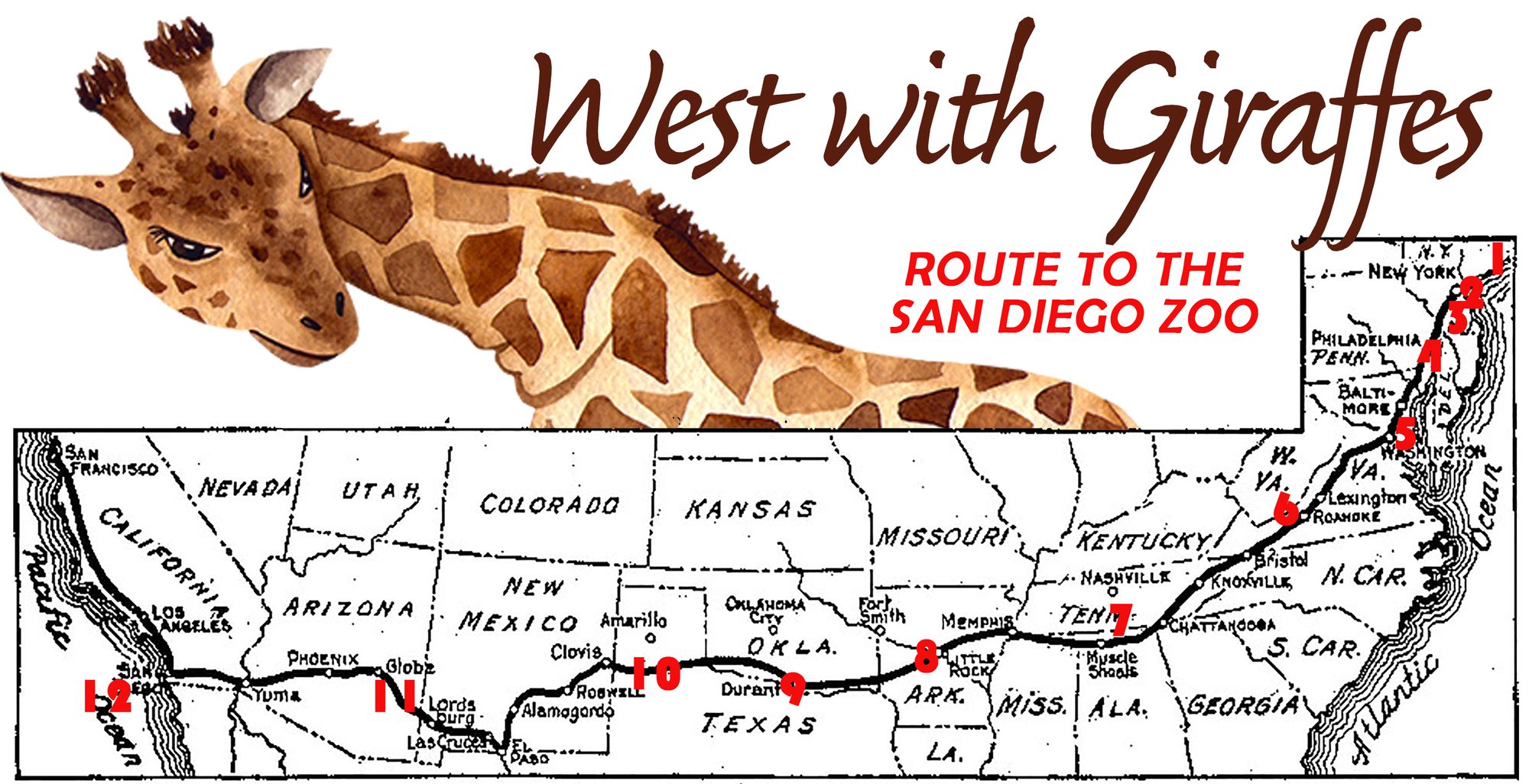 West with Giraffes is based on the true story of two giraffes that were transported across the US en route to the San Diego Zoo in 1938.